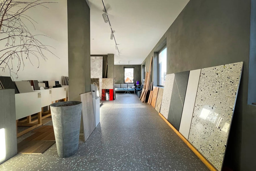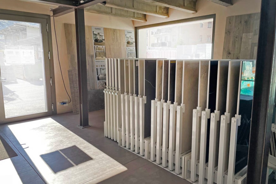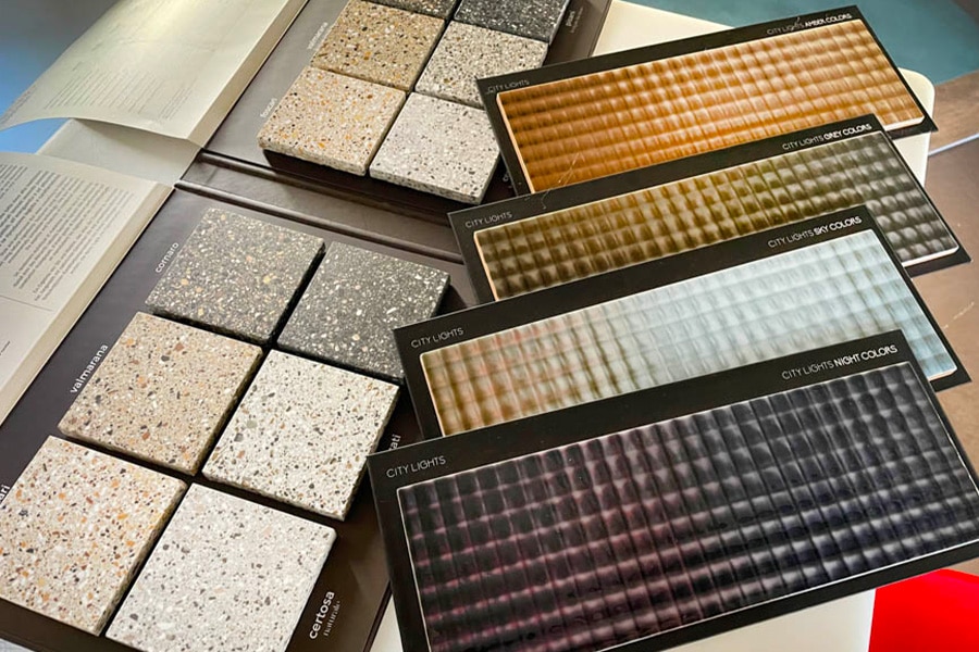 Le plaisir de caresser les matériaux, d’en évaluer les fines variantes de couleur à la lumière, de choisir parmi les différentes propositions de design contemporain et de grand effet